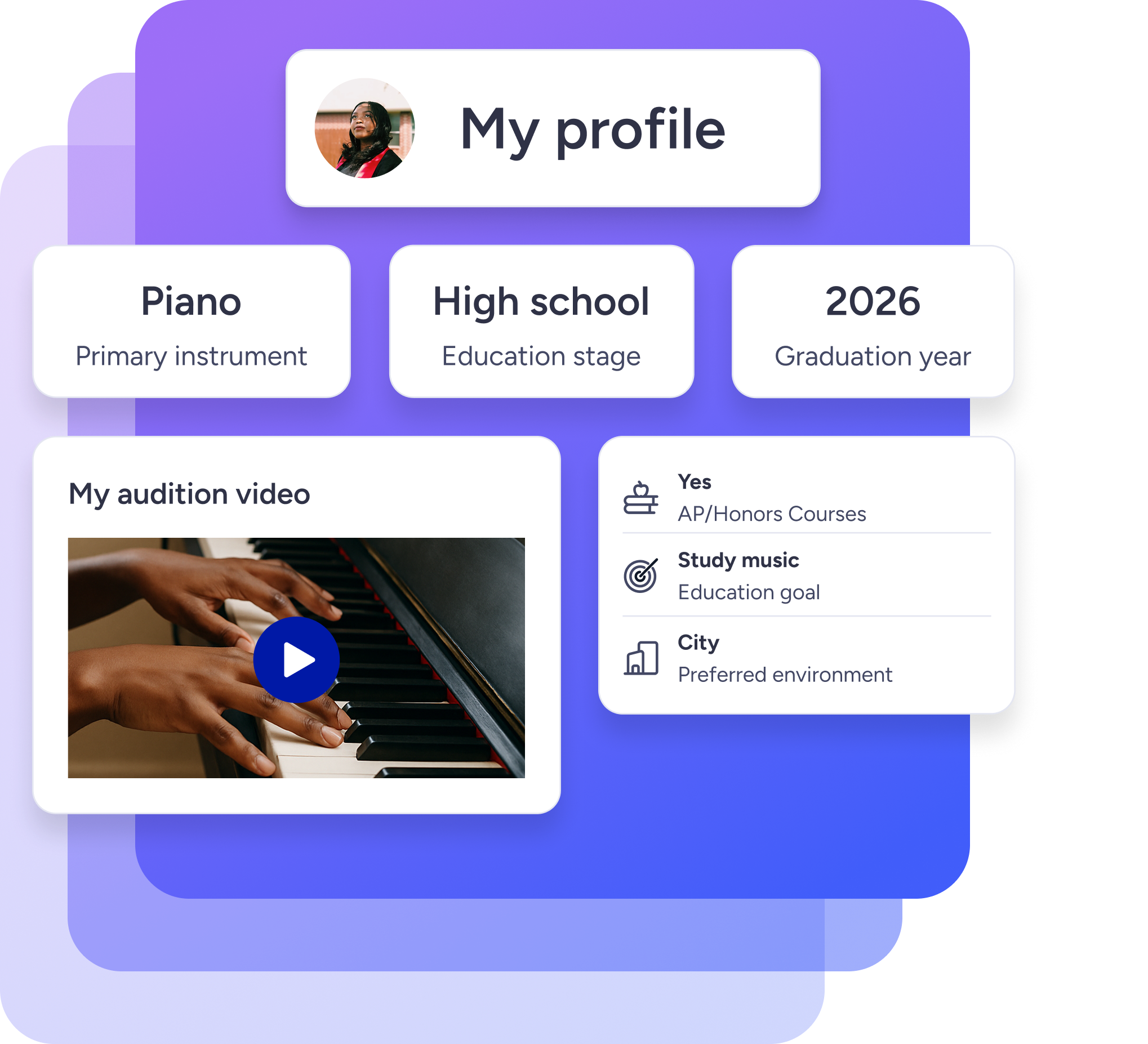 CommonTime Pathways is a social platform designed specifically for music recruitment. Students create profiles, upload performance videos, and share their academic goals and preferences. Colleges can discover these students, and students can also explore and connect with schools directly. This mutual connection helps both students and colleges find their perfect match.